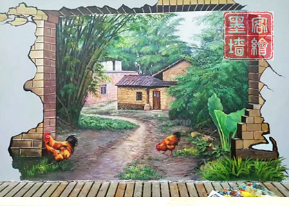 溫州市墨客墻繪藝術有限公司主要從事有個性有創意的家居裝飾墻繪、幼兒園卡通彩繪、KTV酒吧主題墻繪、3D立體墻繪、習哥彭姐文化大革命的城鄉文化宣傳墻繪等,當然還有我們獨歩武林的高墻墻繪藝術!畫高墻有時一個頭像就有兩米,不僅僅是大了型不好把握,一般習慣在陸地作戰的繪畫者往往上去后會讓你唱起一首歌:“三月里的小雨,淅瀝瀝瀝......瀝瀝……淅瀝瀝瀝下個不停……”就是戴上尿不濕,他們也會在上面演示帕金森。我們施工時下面觀看的人如少女初戀般心跳,欣賞的人似紂王品酒觀妲己跳舞一樣陶醉。連村中惡犬也為我們搖尾吶喊:“……墨客墻繪……神勇無畏!